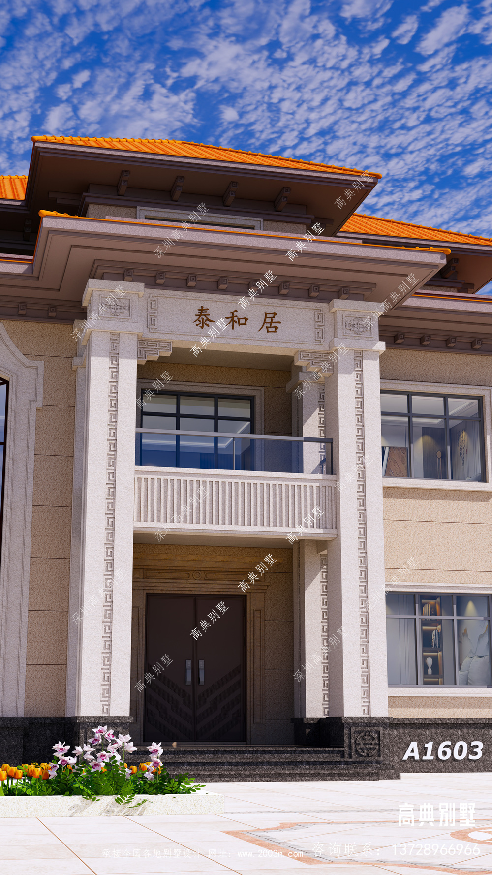 A1603号别墅外墙主要材料:大理石墙脚、真石漆、310X310S瓦