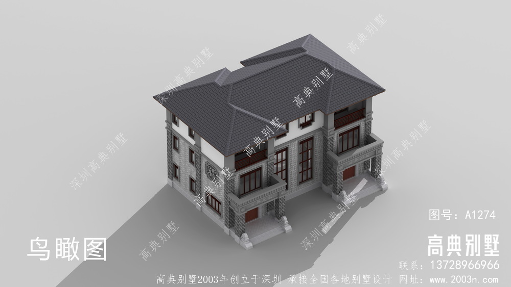 AA1274号别墅外墙材料:水泥平板瓦、真石漆、仿古青砖、麻石