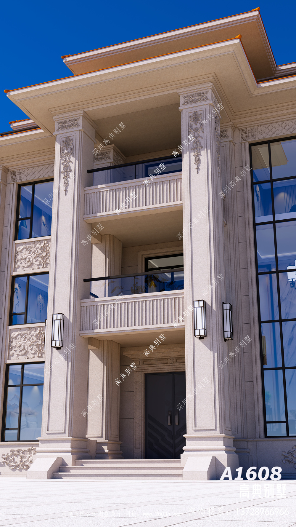 A1608号别墅外墙主要材料:大理石、真石漆、310X310S瓦